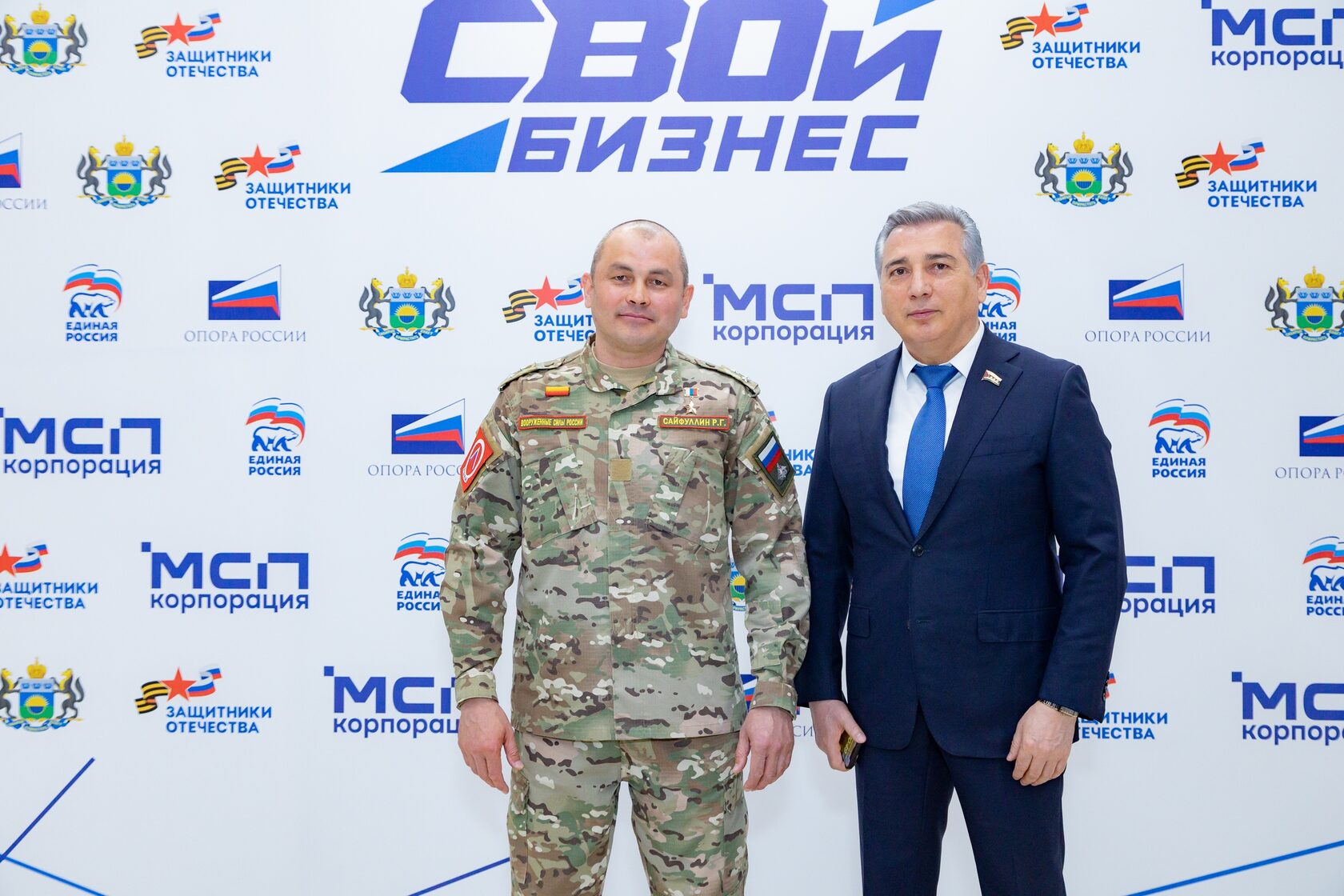 – Ольга Швецова, мама погибшего участника СВО, выпускница проекта «СВОй бизнес» и Николай Покормяк, участник специальной военной операции.